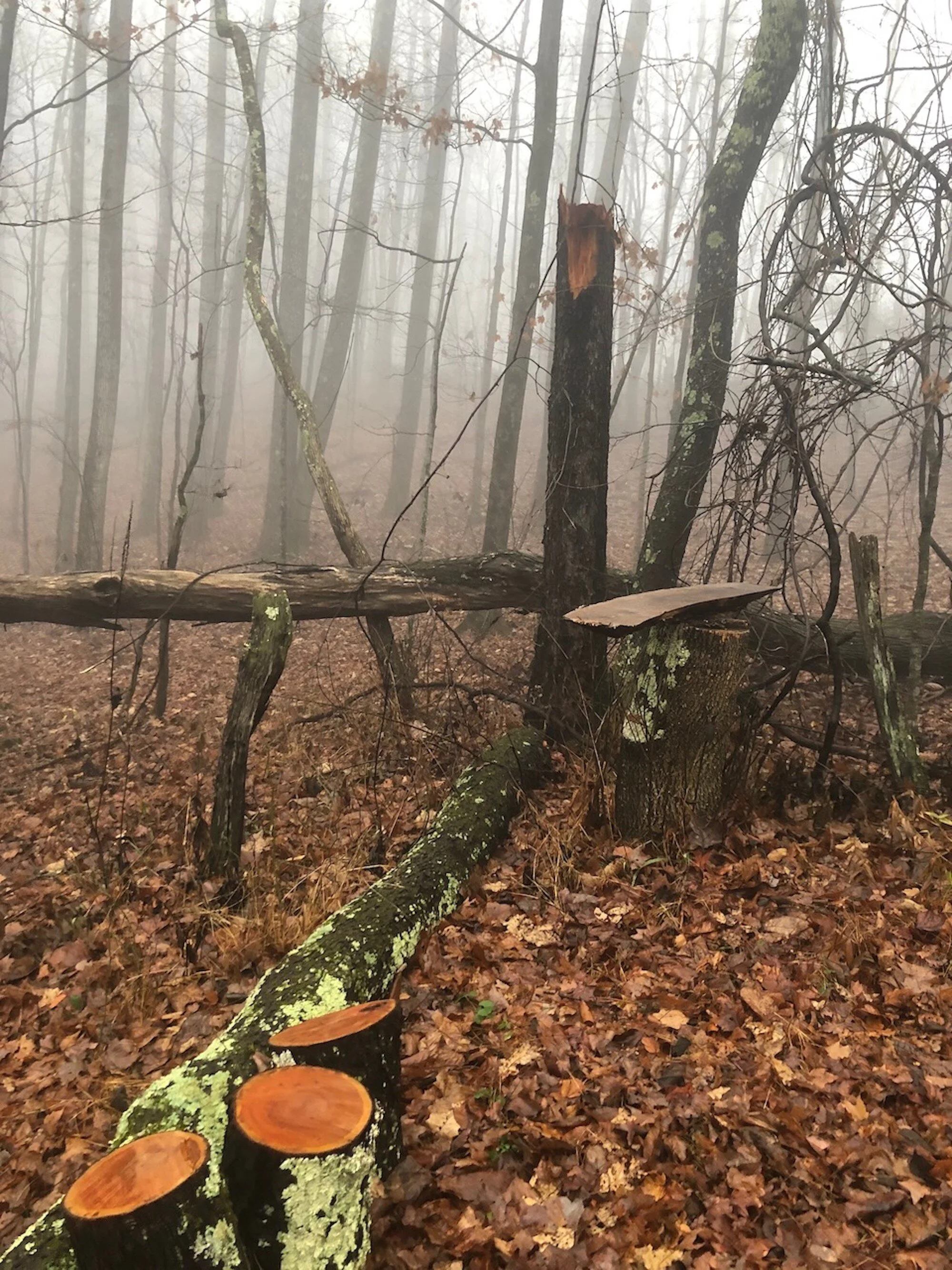 November focus on the forms, here a slab of lumber with a few stumps, a fallen tree in progress.