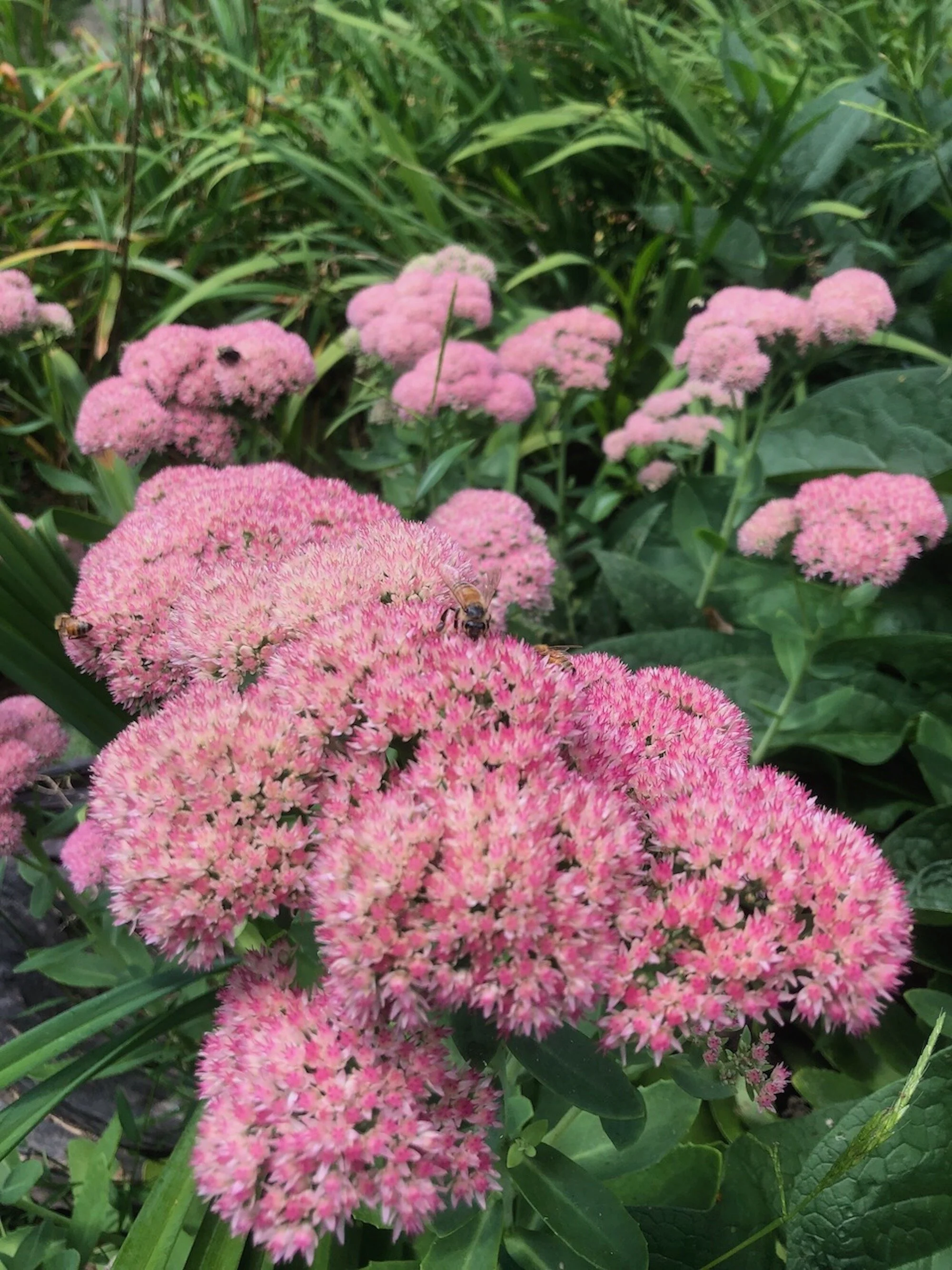 Sedum, another plant that has emerged in a couple locations by virtue of the weeds and poison ivy being removed.